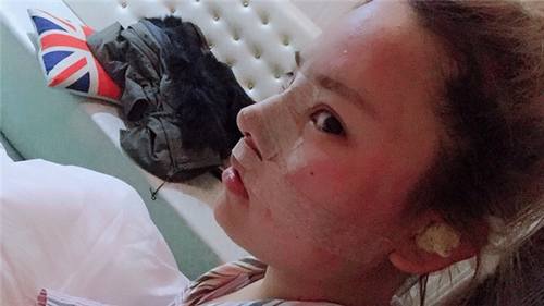 去输液了,脸已经开始肿了!取耳软骨的地方很疼,连着脖子也都肿了。